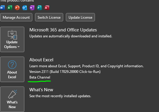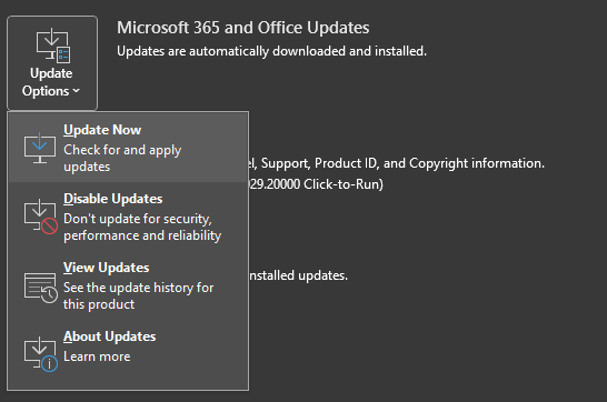Now you want to ensure to let your excel update, you may need to click under File→Account in your Excel: Update Options →Update now: