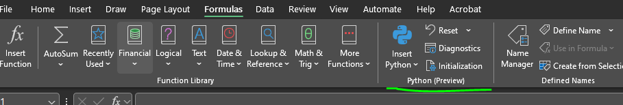 After updating, you can try and have a look if python in excel is available already under the Formulas tab, if it is not yet, you will have to restart your pc. By now it should be available.